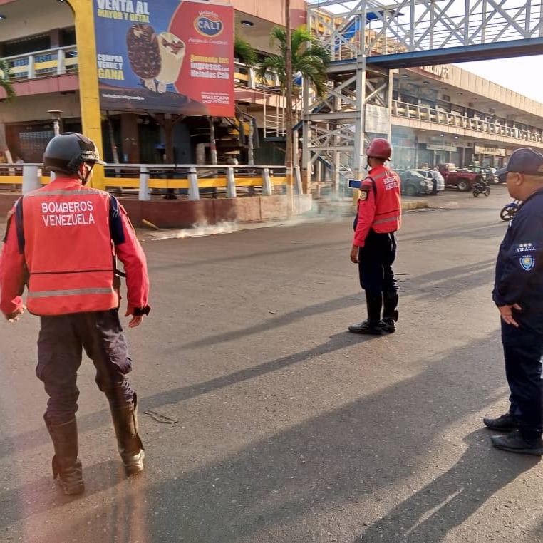 Los funcionarios bomberiles en el lugar, realizaron labores de prevención y seguridad, resguardando el área con un perímetro de 15 metros y haciendo el enfriamiento del asfalto esparciendo agua/ nota de Bomberos de Anzoátegui.