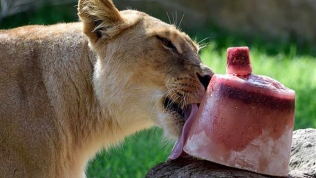 Animales de zoológicos de Yucatán, en el sureste de México, reciben paletas de hielo para refrescarse y mitigar la intensa ola de calor que mantiene los termómetros de 36 a 40 grados en este lugar.