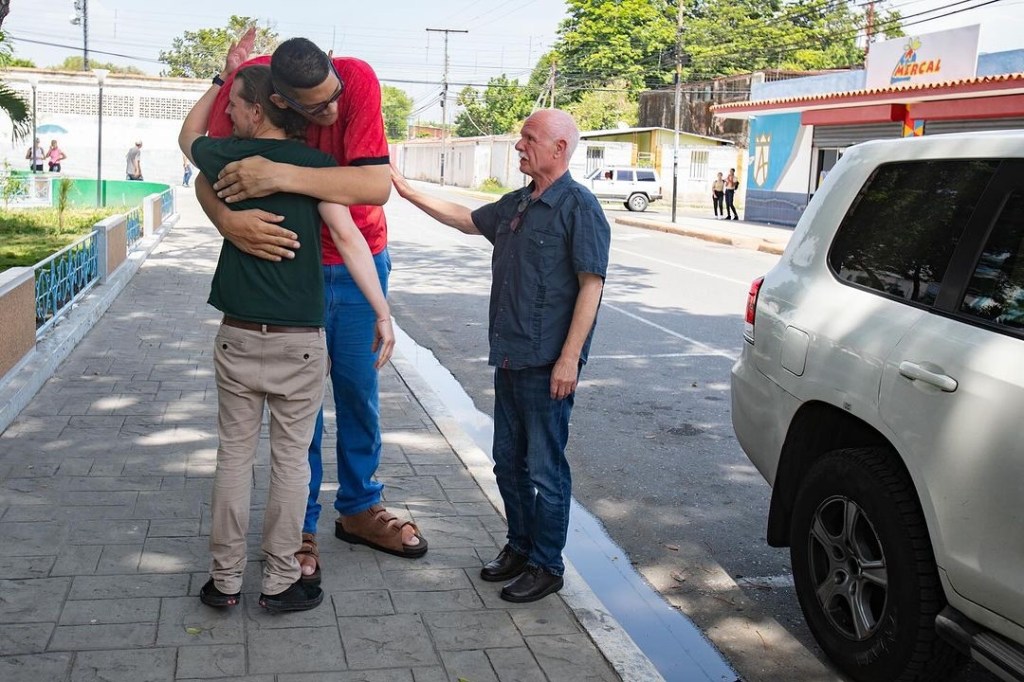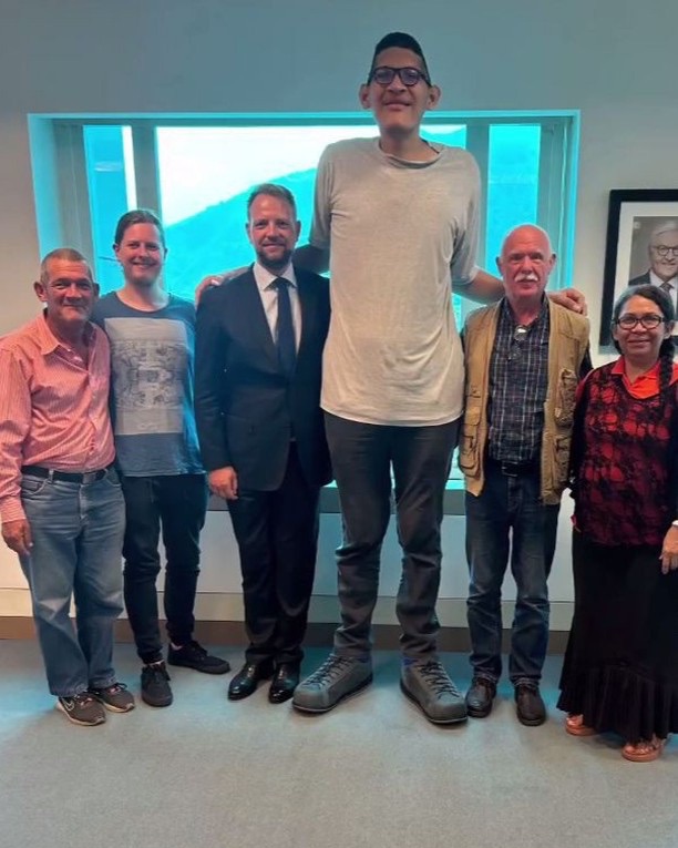 La embajada de Alemania en Venezuela compartió, en las redes, el momento de entrega de unos nuevos zapatos a Jeison Rodríguez, el venezolano con los pies más grandes del mundo.