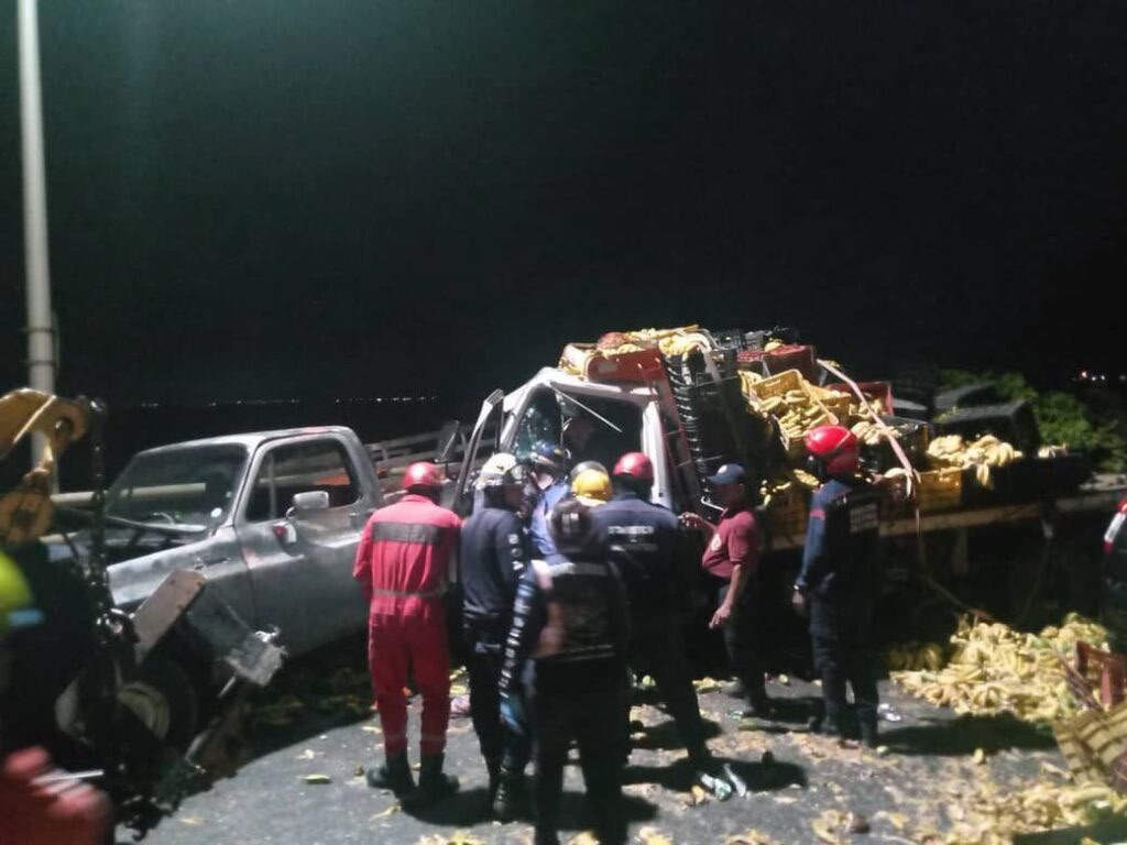 El accidente de tránsito en el puente que atraviesa el lago de Maracaibo ocurrió cerca de las 2.00 a.m. del sábado, en la pila 91, e involucró a dos camiones, una camioneta Chevrolet y un carro Ford Fiesta.