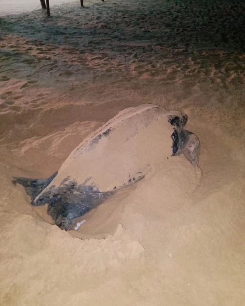 Desde la noche del miércoles hasta la madrugada de ayer jueves una tortuga Cardón (Dermochelys coriacea) arribó a playa Conoma en el municipio Guanta para anidar.