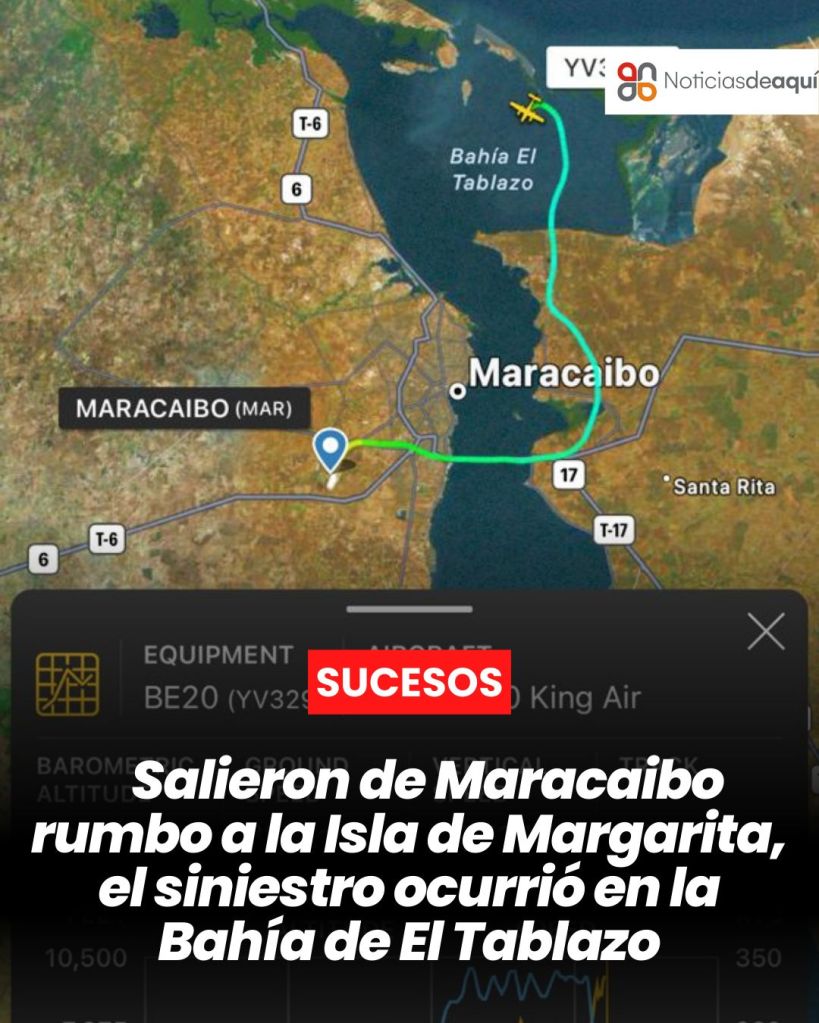 Mediante información aportado por el Cddno. Felix Márquez, CIV.-19.394.696, Técnico de información aeronáutica N° 1, adscrito al INAC, se pudo conocer sobre la aeronave Modelo, BE-20, Siglas: *YV3296,* piloteada por el Capitán Bernardo Azocar, CIV.- 3.914.214, dónde trasladaba a siete (07), pasajeros de nombres Federico Wolter, CIV.-3.721.608, Paula Homez, CIV.-13.004.732, Germán Wolter, CIV.-17.723.562, Hilda Rincón, CIV.-5.059.370, Laura Prieto, CIV.-4.517.891, Germán Wolter (Infante), y Mia Wolter (Infante), propietarios de la empresa Laticon, la cual despegó por la rampa de Aviación General *(Aeroclub),* del Aeropuerto Internacional «La Chinita», a las 15:30 horas, con itinerario de vuelo hacia el Aeropuerto Internacional Santiago Mariño, ubicado en el Edo. Nueva Esparta.