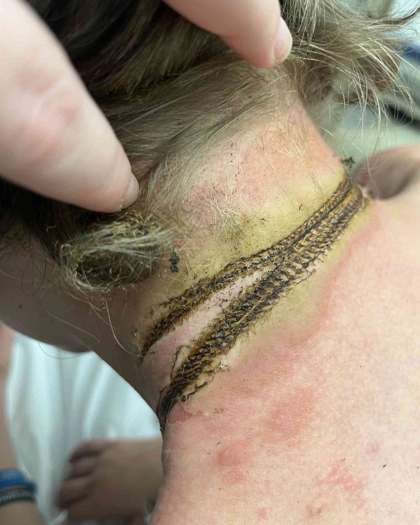 El incidente dejó a Rayce con quemaduras de segundo, tercer y cuarto grado en el cuello, donde tenía la cadena, y en las manos por haber intentado quitarse el cable que había tomado la corriente. «Estaba tan caliente que soldó parte de su cadena al cable del cargador», agregó Davis.