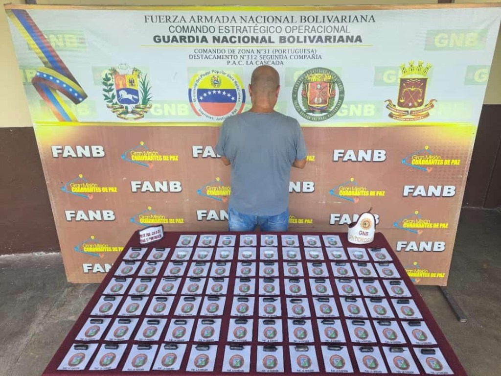Desde el Estado Portuguesa, la Fuerza Armada Nacional Bolivariana (FANB) capturó a un ciudadano por transportar droga de manera intraorgánica, 80 dediles de cocaína, con peso de 1,305 Kg.