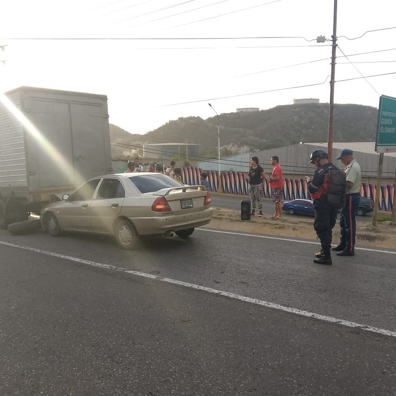 El Cuerpo de Bomberos actuó en respuesta a un accidente entre dos vehículos en la Troncal 9, en la redoma La Virgen del Municipio Guanta.