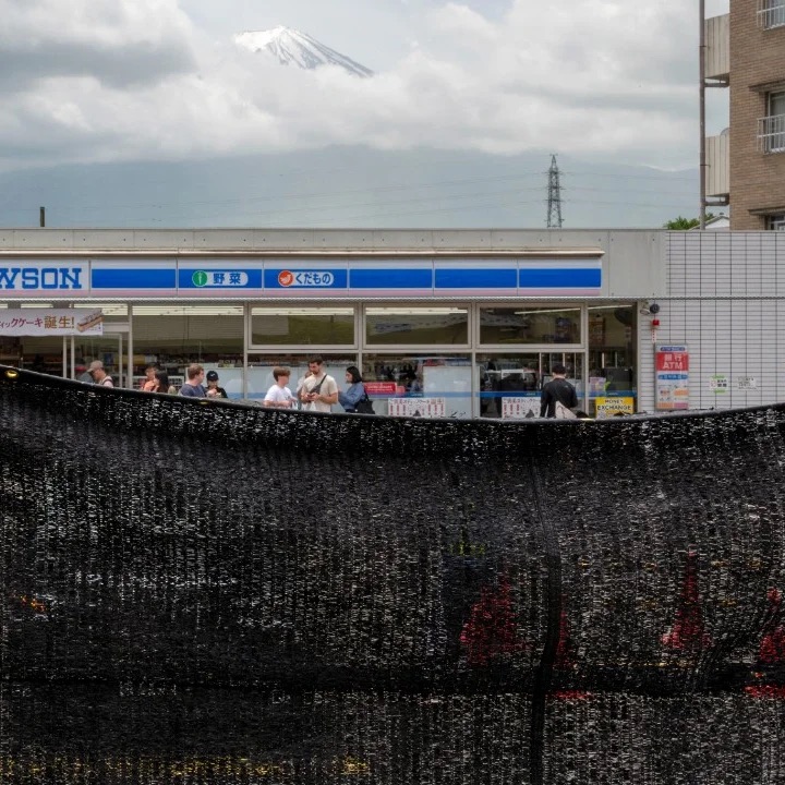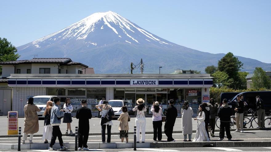 Si bien hay varios lugares donde se puede apreciar el monte Fuji, este preciso lugar se destaca debido a la majestuosa silueta del volcán que sobresale por encima de una tienda de conveniencia Lawson.