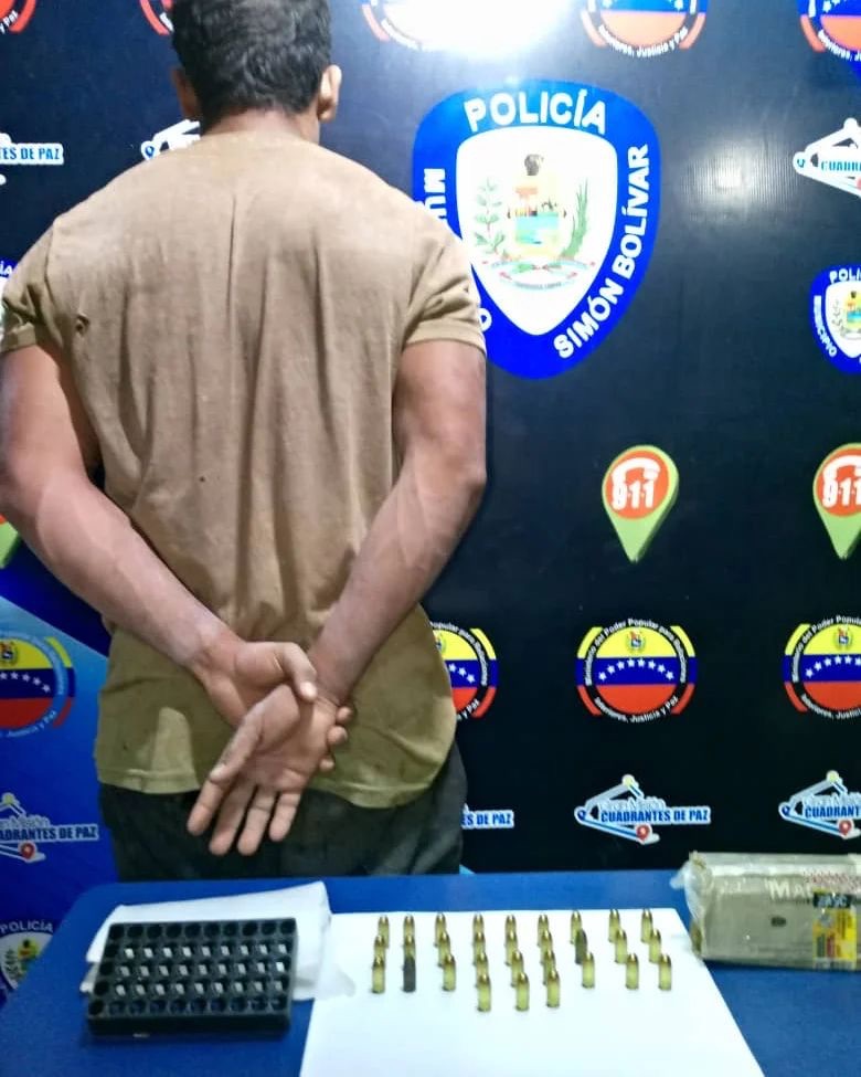 Es en vista de que no pudo justificar la procedencia de las municiones colectadas en el área, se procedió a su detención y traslado a la sede policial, donde quedó a la orden de la Fiscalía del Ministerio Público/ Nota PoliSimónBolívar.