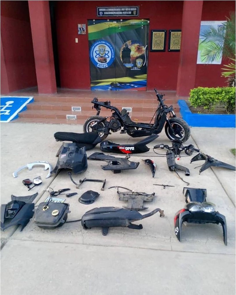 Ronaldo Pereira, de 19 años de edad, quien poseía un registro por robo genérico y Daniel Malavé, de 34 años, dedicados al hurto y desvalijamiento de motos, fueron detenidos por la Coordinación de Investigaciones de Vehículos de la Delegación Municipal Barcelona, en el sector Razetti 1, calle Venezuela, Barcelona, estado Anzoátegui.