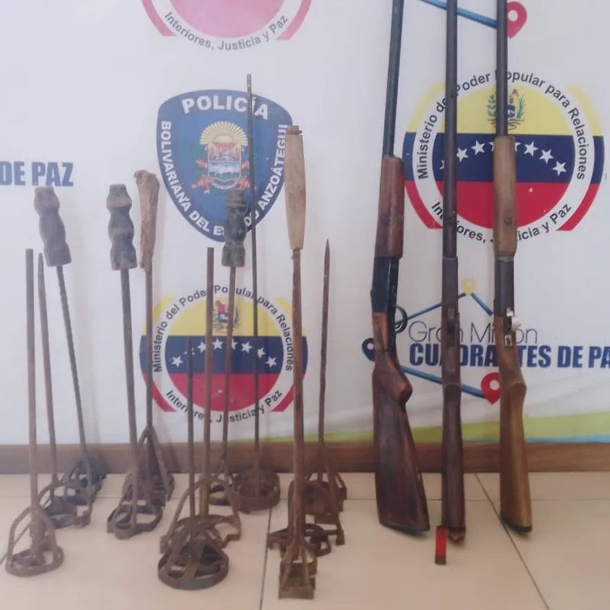 En el sitio se incautaron tres escopetas cañón largo, calibres 12 y 16 milímetros, dos hierros para el marcaje de ganado y dos reses. El procedimiento fue puesto a la orden del Ministerio Público/ Nota de Polianzoátegui.