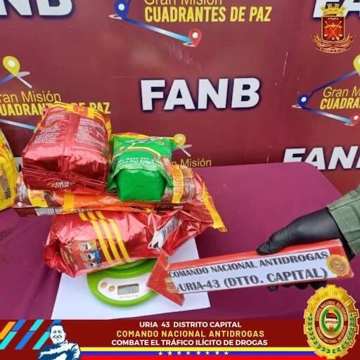 A través de su cuenta en la red social X, explicó que los estupefacientes, distribuidos en cinco envoltorios, fueron encontrados en la oficina de una empresa de envíos ubicada en el estado Miranda.