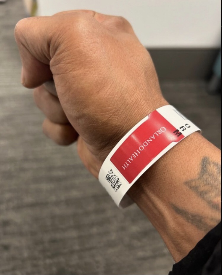 El mensaje va acompañado con una imagen en la que muestra un brazalete de la red de hospitales Orlando Health, en Florida.