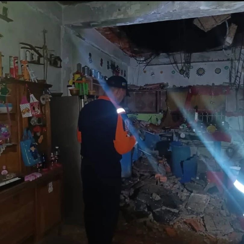 Al llegar al lugar, se pudo constatar que la novedad se trataba de una vivienda unifamiliar construida con paredes de bloques, vigas y columnas de concreto. Durante la evaluación y análisis de daños, se observó el colapso del techo de platabanda ubicado en el área de la cocina, cediendo por la acumulación de agua. Las lluvias registradas en la zona durante el día anterior ocasionaron daños estructurales a la vivienda.