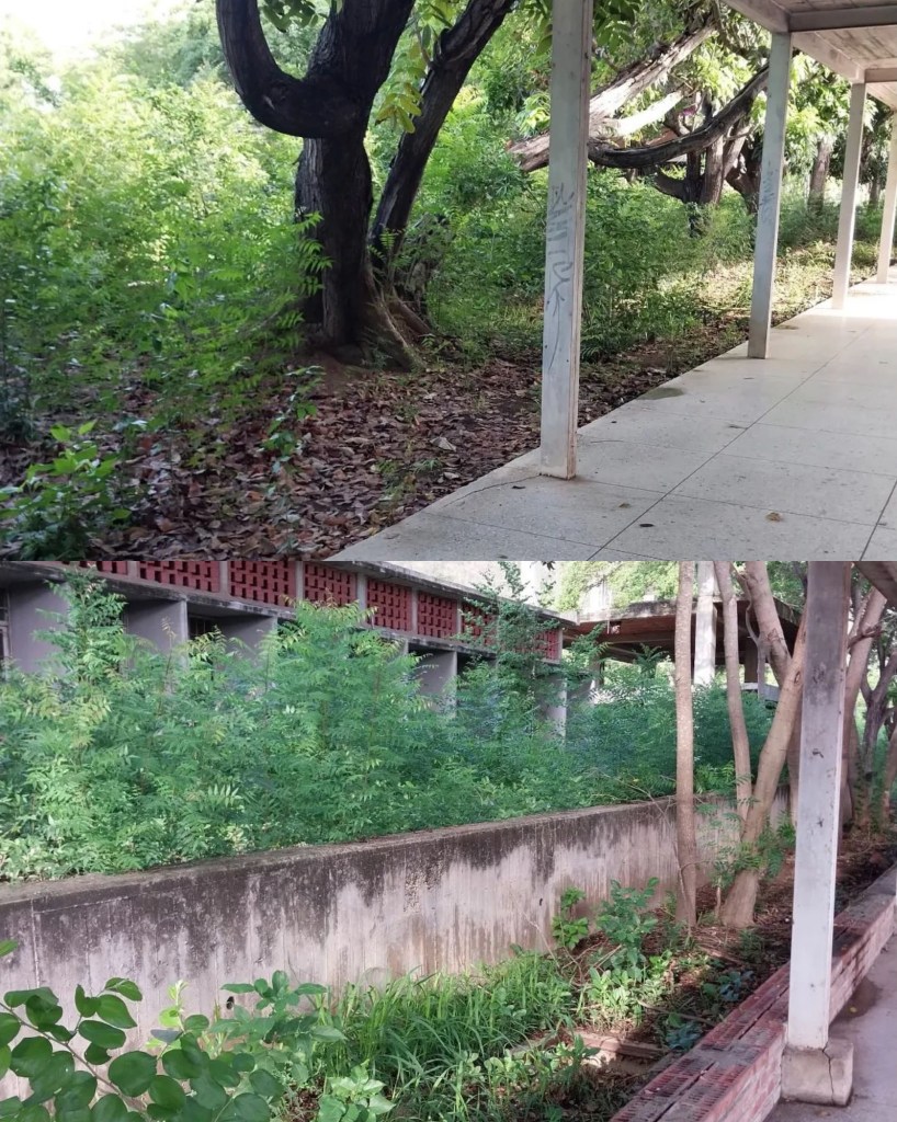 Estudiantes de UDO Anzoátegui reportan el mal estado en el que se encuentran las áreas de Cursos Básicos y Civil, a causa de la maleza y el monte que las han invadido.