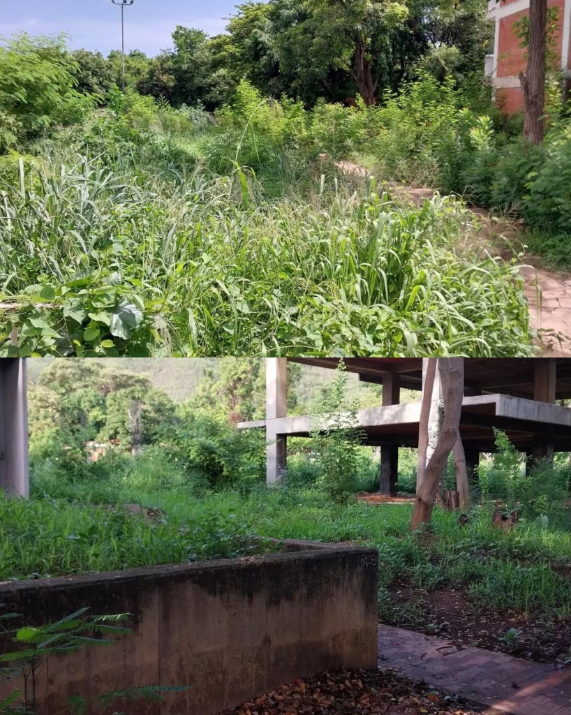 Las imágenes compartidas por los afectados y que publicó el canal de información universitario (@Boludooficial) muestran las áreas cubiertas por vegetación incontrolada, lo que genera incomodidad y un ambiente insalubre.
