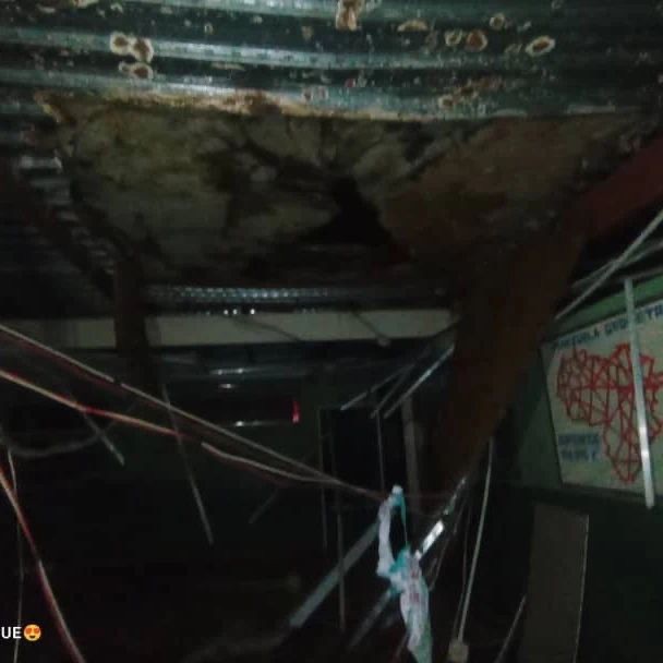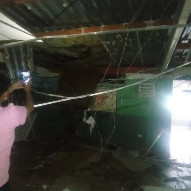 Durante la inspección, se constató el colapso de una parte del techo de una vivienda adyacente, ocasionado por la falta de una viga corona que sostuviera la estructura y el peso del agua acumulada en la parte superior.