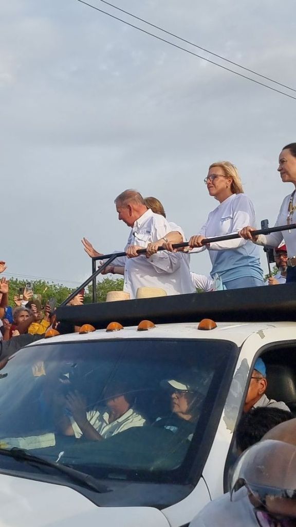 las 5:45 pm de este miércoles 10 de julio el candidato Edmundo González acompañado de su esposa y María Corina Machado comenzaron a recorrer la avenida Intercomunal de Barcelona rumbo a la tarima que se instaló a pocos metros del elevado de Lechería.