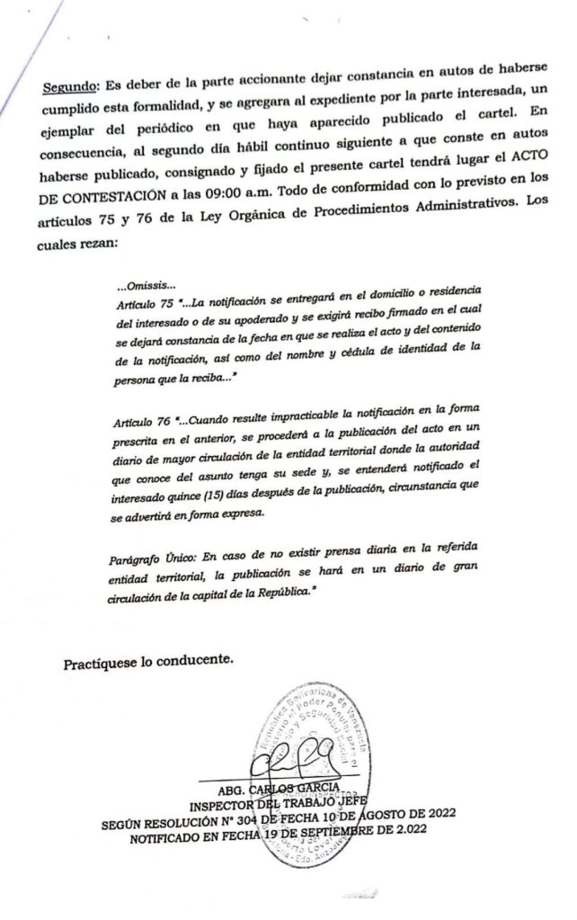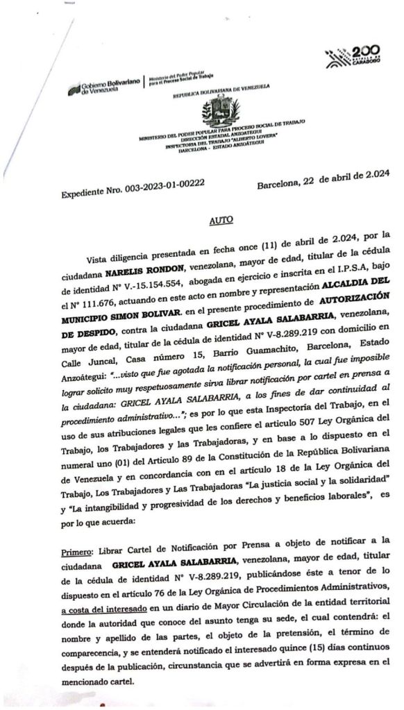 Cartel de notificación Alcaldía de Barcelona para: