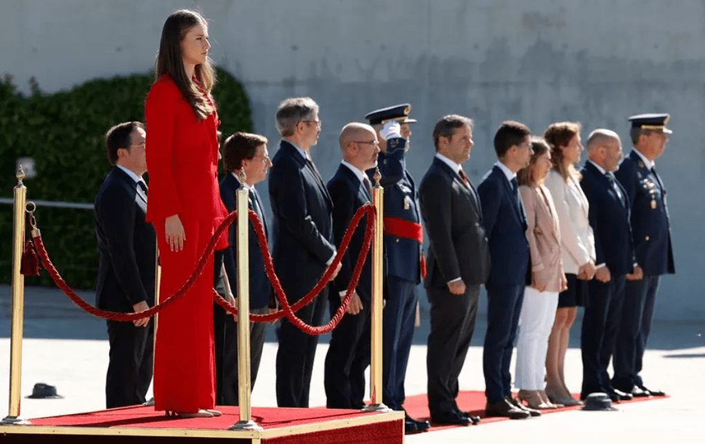 Para la ocasión, la princesa eligió un traje que hace referencia al estilismo usado por su madre, la reina Letizia: un traje rojo de Carolina Herrera (una de las diseñadoras favoritas de su progenitora) con delicados tacones nude. Su elección ha levantado todo tipo de comentarios positivos en redes sociales, que se hacen eco de su elegancia e impecable caminar.