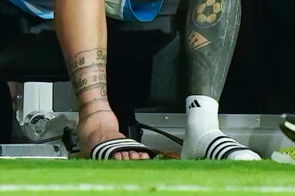 Después de unos minutos, la TV pudo evidenciar el nivel de hinchazón de la articulación de Lionel, que hizo recordar a Diego Armando Maradona, quien en el Mundial de 1990 sufrió una lesión en el tobillo izquierdo ante Rumanía. Los médicos de la selección lo infiltraron y así pudo continuar hasta la final del certamen