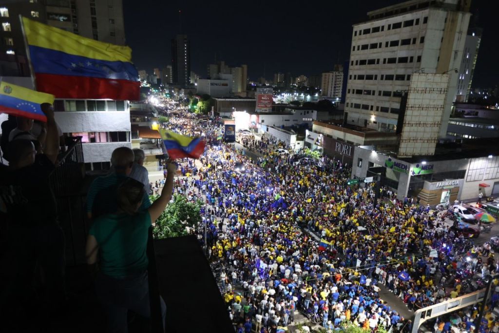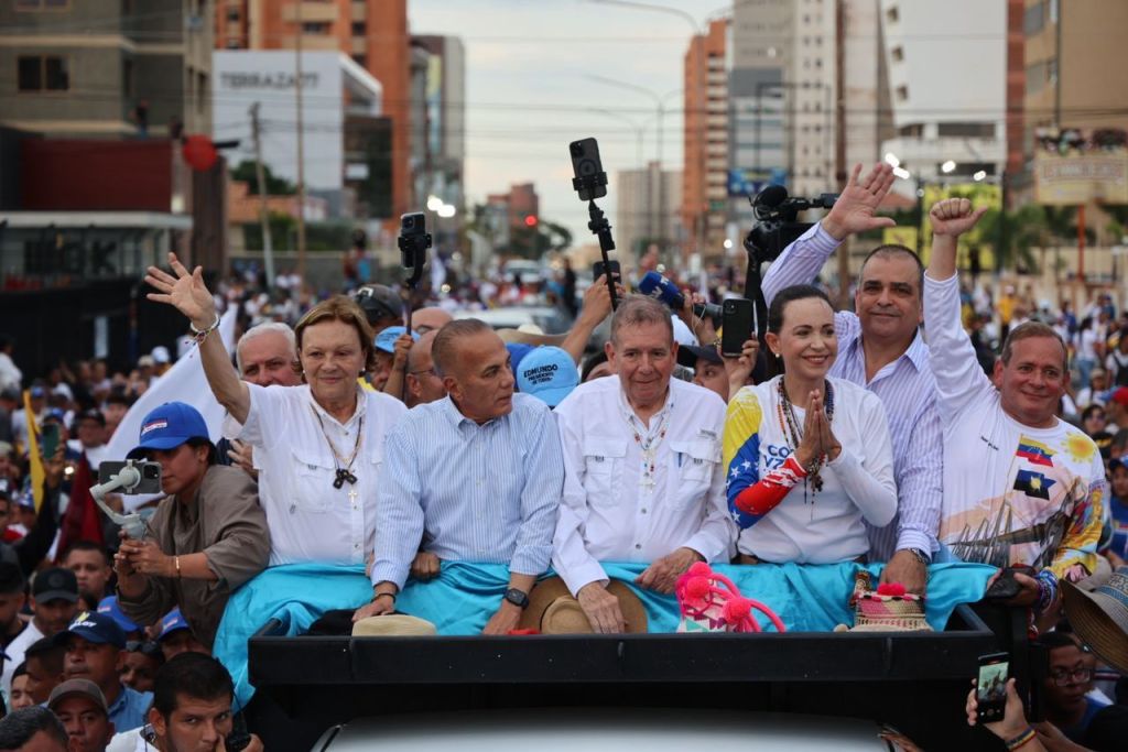 En la avenida 5 de julio de Maracaibo se concentraron ciudadanos que respaldan la opción de González Urrutia. Antes del acto de cierre de campaña tanto el candidato presidencial, como María Corina Machado participaron en una rueda de prensa.