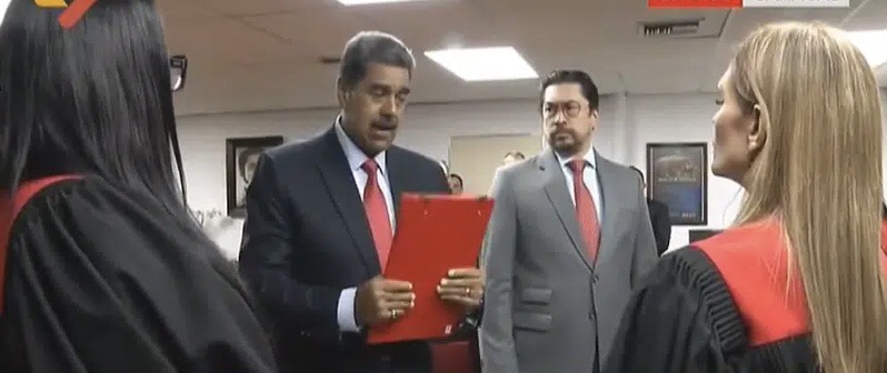 Maduro entregó a la presidenta del máximo tribunal del país, Caryslia Beatriz Rodríguez Rodríguez, el documento, acompañado del Procurador General de la República, Reinaldo Muñoz.