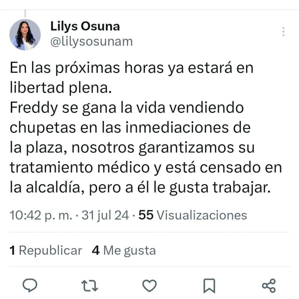 La alcaldesa del municipio Simón Rodríguez, Lilys Osuna informó pasadas las 10:00 pm de este miércoles 31 de julio a través de sus redes sociales que en las próximas horas también saldrá libre el adolescente de 15 años, detenido en las inmediaciones de la plaza Bolívar, a pocos metros de la sede del Psuv, donde ocurrieron los hechos.