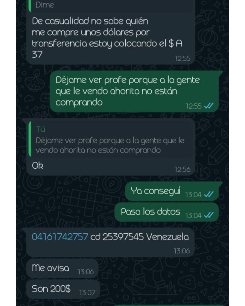 Mostró un chat con el «usurpador» quien requería 200$ al cambio en Bolívares, el muchacho verificó con su amigo y se descubrió al delincuente.