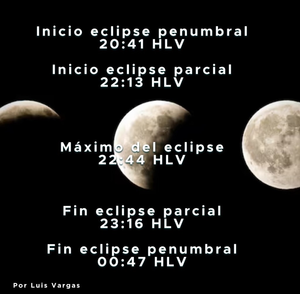 El meteorólogo Luis Vargas informó que hoy 17 de septiembre será visible un eclipse parcial de Luna en Venezuela, con el máximo previsto a las 22:44 horas (HLV).