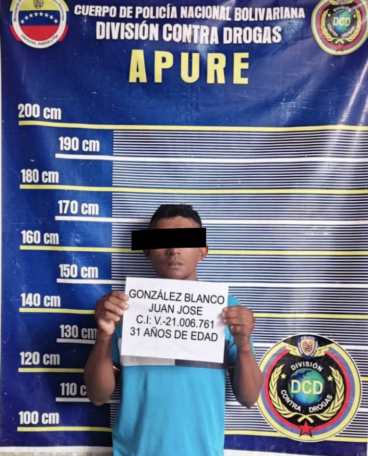 La Comisión de la División Contra Drogas de la Policía Nacional Bolivariana (PNB) durante un trabajo de campo e inteligencia en la avenida Perimetral de San Fernando de Apure, detuvo a Juan José González, de 31 años, solicitado por el Juzgado Primero de Control del Área Metropolitana, según Oficio 251-23 y causa penal 01C-060-2022, por el delito de asociación para delinquir y terrorismo.