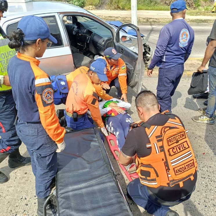 Protección Civil Anzoátegui, en colaboración con representantes de Protección Civil Urbaneja, atendió un accidente de tránsito que tuvo lugar en la Avenida Costanera, adyacente al Conjunto Residencial Puerto Guaica. El incidente involucró una colisión entre dos vehículos, seguida de un impacto contra un objeto fijo.