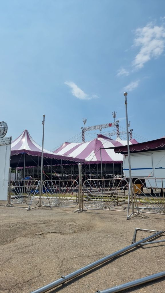 Este sábado 26 de octubre hará su debut en #Lechería el Circo @losvalentinos más de 50 personas trabajan en el montaje de la gran carpa, la cual es instalada en el estacionamiento del Centro Comercial Plaza Mayor.