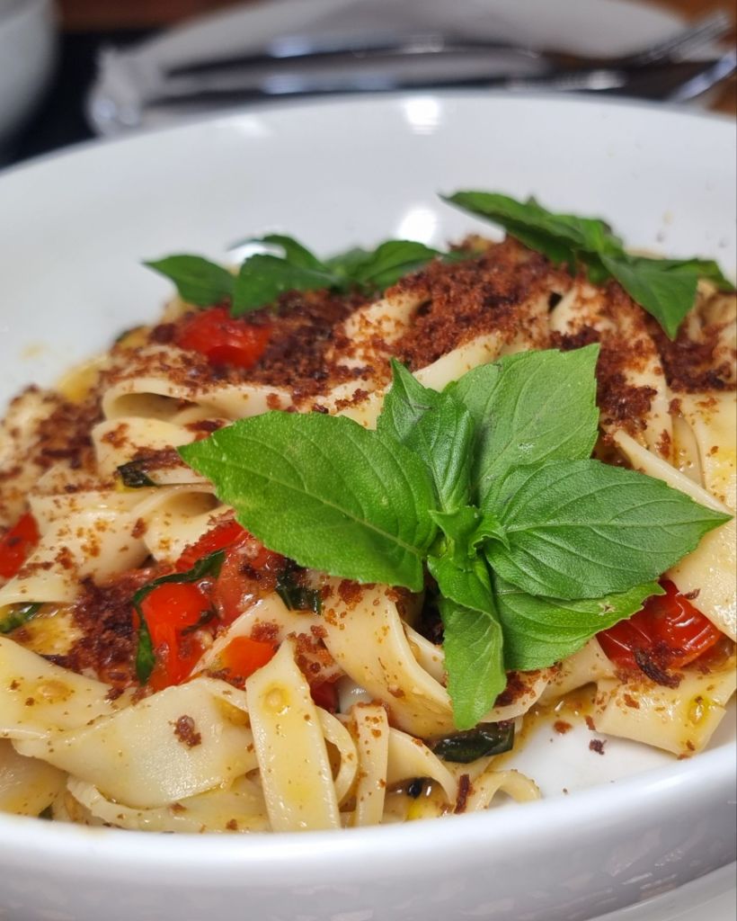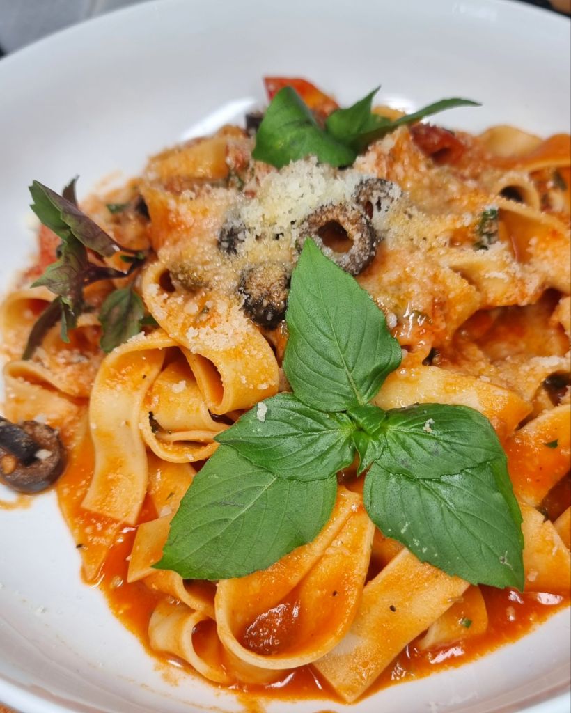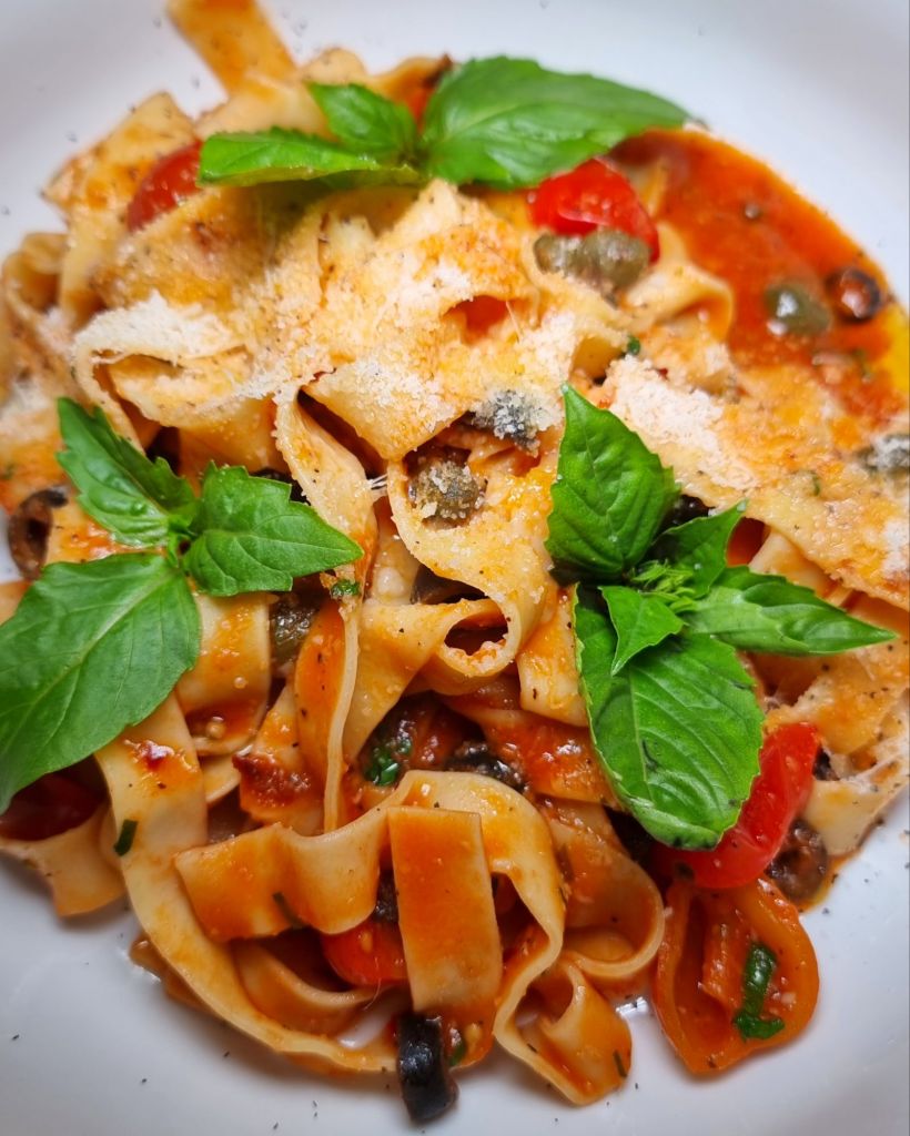 Preparan de manera artesanal pastas largas y rellenas, también comercializan sus salsas, foccacias, los antipastos son deliciosos y el postre sublime.