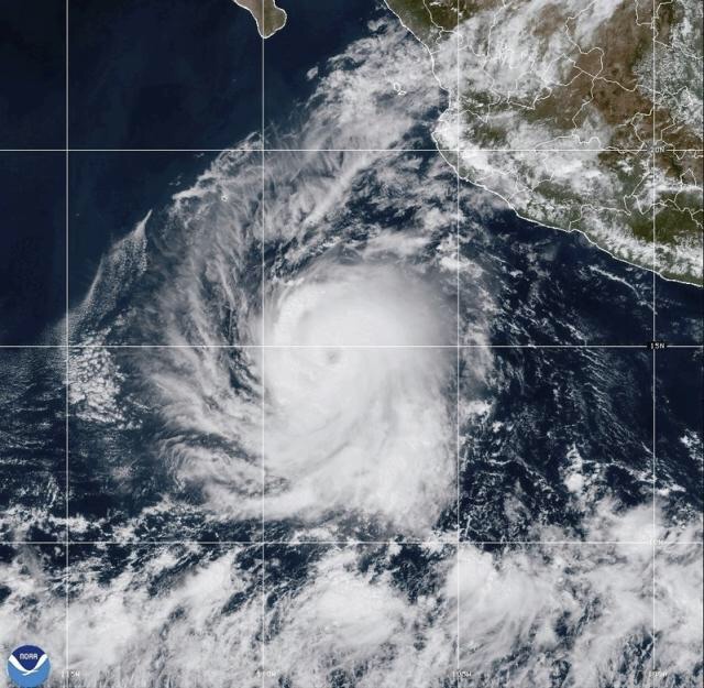 El huracán se encontraba a 1.565 kilómetros al suroeste del extremo sur de la península de Baja California, en México, y se desplazaba hacia el oeste a 26 kilómetros por hora. Tenía vientos máximos sostenidos de 260 kilómetros por hora, según el Centro Nacional de Huracanes, con sede en Miami.