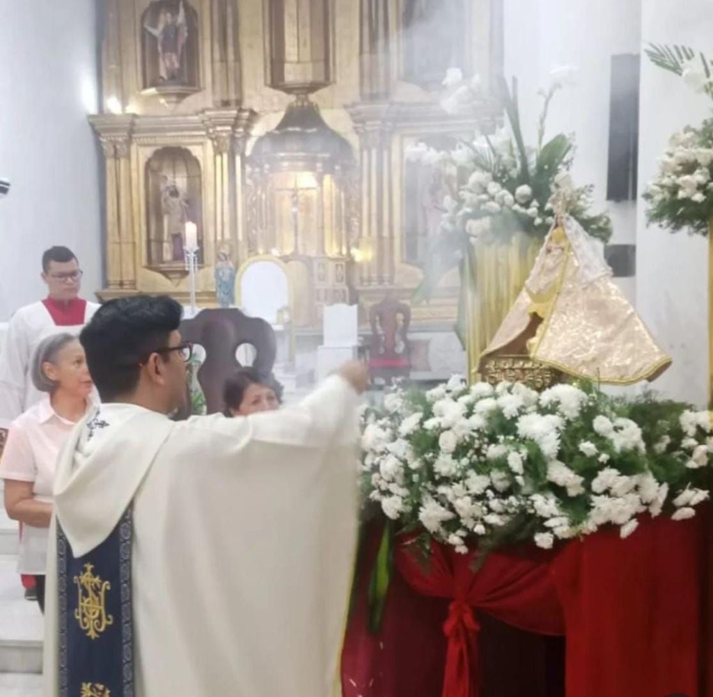 La misa fue oficiada por el presbítero Eloy García, y la figura de la Virgen del Totumo, como comúnmente se le conoce, fue entronizada en un altar en el templo.