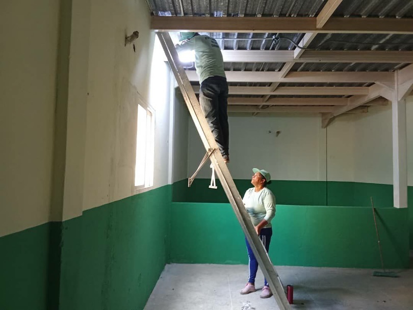 Las intervenciones realizadas incluyen desmalezamiento, preparación de paredes y pintura, así como mejoras en el cableado e iluminación.