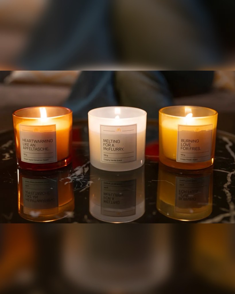 McDonald’s en Austria ha lanzado una colección de velas aromáticas de edición limitada llamada “Iconic Candle Collection”, inspirada en algunos de sus productos más emblemáticos: papas fritas, tarta de manzana y McFlurry.