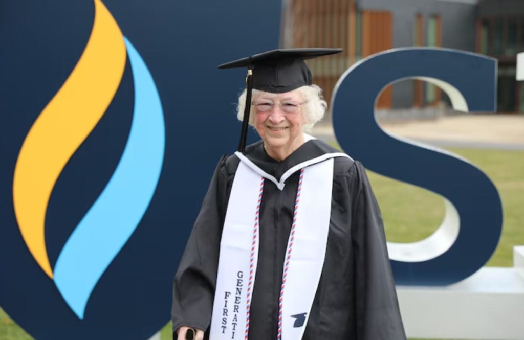 Después de dejar sus estudios tras la pérdida de su esposo en la guerra de Vietnam, Annette, madre de cinco, abuela de doce y bisabuela de quince, había puesto en pausa sus sueños académicos. Sin embargo, décadas más tarde, su hija descubrió que había acumulado suficientes créditos para obtener su título.
