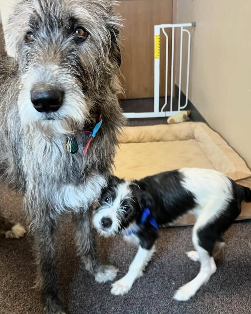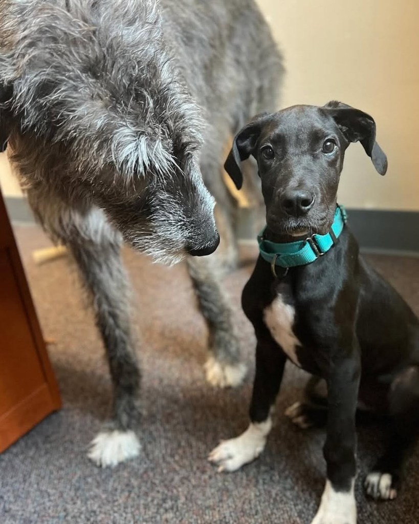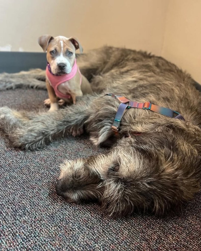 Chicken, un perro de tamaño descomunal, se ha convertido en la sensación de un refugio local, donde su presencia serena está transformando la vida de los cachorros más tímidos. Con su tamaño imponente y su naturaleza tranquila, este gentil gigante ha creado un ambiente seguro y acogedor para los perritos que necesitan un poco de ayuda para salir de su caparazón.