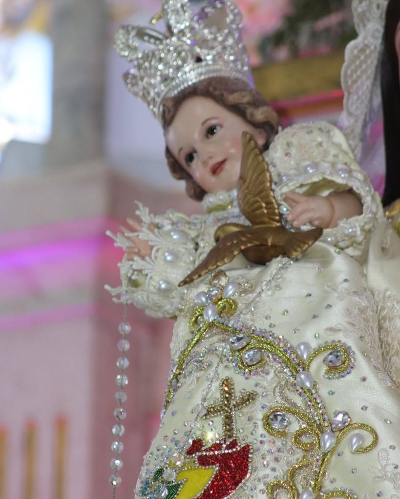 El diseño del vestido está inspirado en el Año Jubilar 2025, un momento significativo para la comunidad. En la parte de atrás, se encuentra la silueta de nuestro Santuario, un homenaje a la historia y la espiritualidad que envuelven a la Virgen. Esta representación no solo exalta la belleza de La Candelaria, sino que también conecta a los fieles con su patrimonio cultural y religioso.
