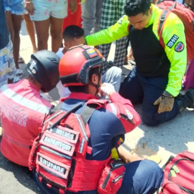 Efectivos del Grupo Motorizado para la Atención de Emergencias (GRUMAE) actuaron rápidamente ante un siniestro vial que involucró a dos vehículos en el municipio Sotillo. El incidente dejó un saldo de tres personas heridas, quienes recibieron atención prehospitalaria en el lugar por parte del equipo de rescate.