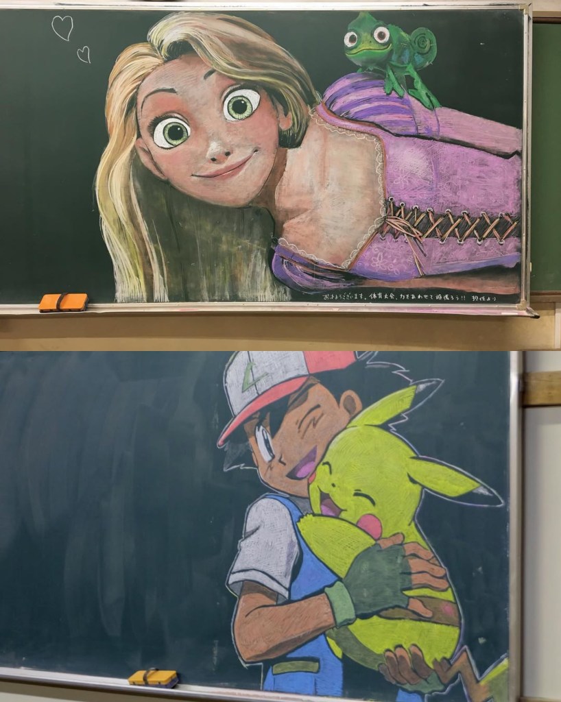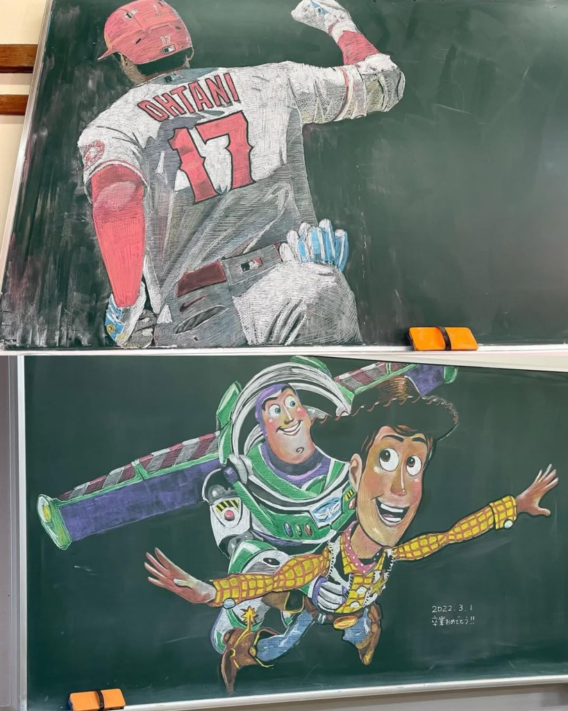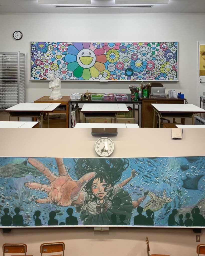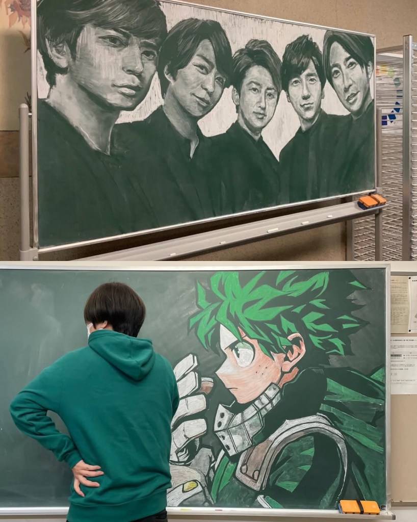 Hirotaka Hamasaki, un profesor de arte de secundaria en Nara, Japón, ha ganado reconocimiento mundial por su innovadora técnica de enseñanza. En lugar de simplemente dar lecciones teóricas, Hamasaki utiliza su talento como diseñador gráfico para crear impresionantes obras de arte en el pizarrón de su aula. Sus dibujos, hechos completamente con tizas de colores, representan desde personajes de anime y videojuegos hasta obras de arte clásicas y celebridades.
