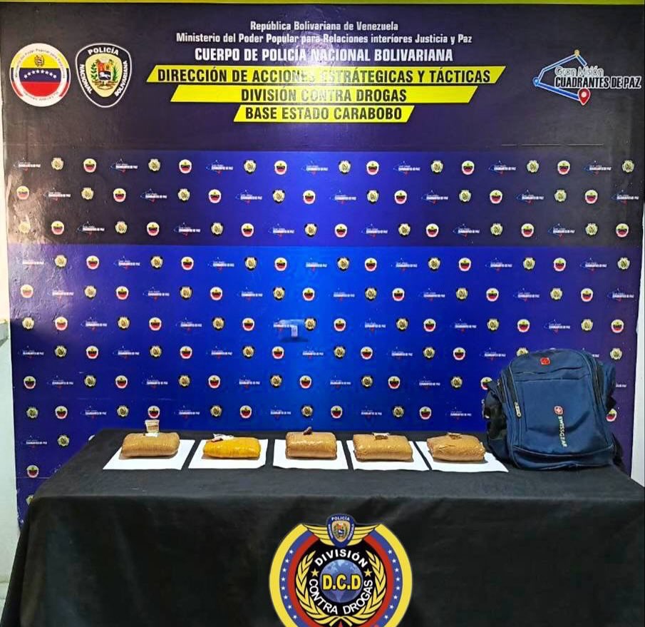 Las autoridades informaron que, tras una minuciosa revisión, se incautaron dos envoltorios que contenían presunta cocaína, con un peso aproximado de 1.816 gramos. Además, se encontraron tres envoltorios de marihuana que pesaban alrededor de 1.205 gramos. También fue confiscado un bolso que, según las investigaciones, se utilizaba para el transporte de estas sustancias.