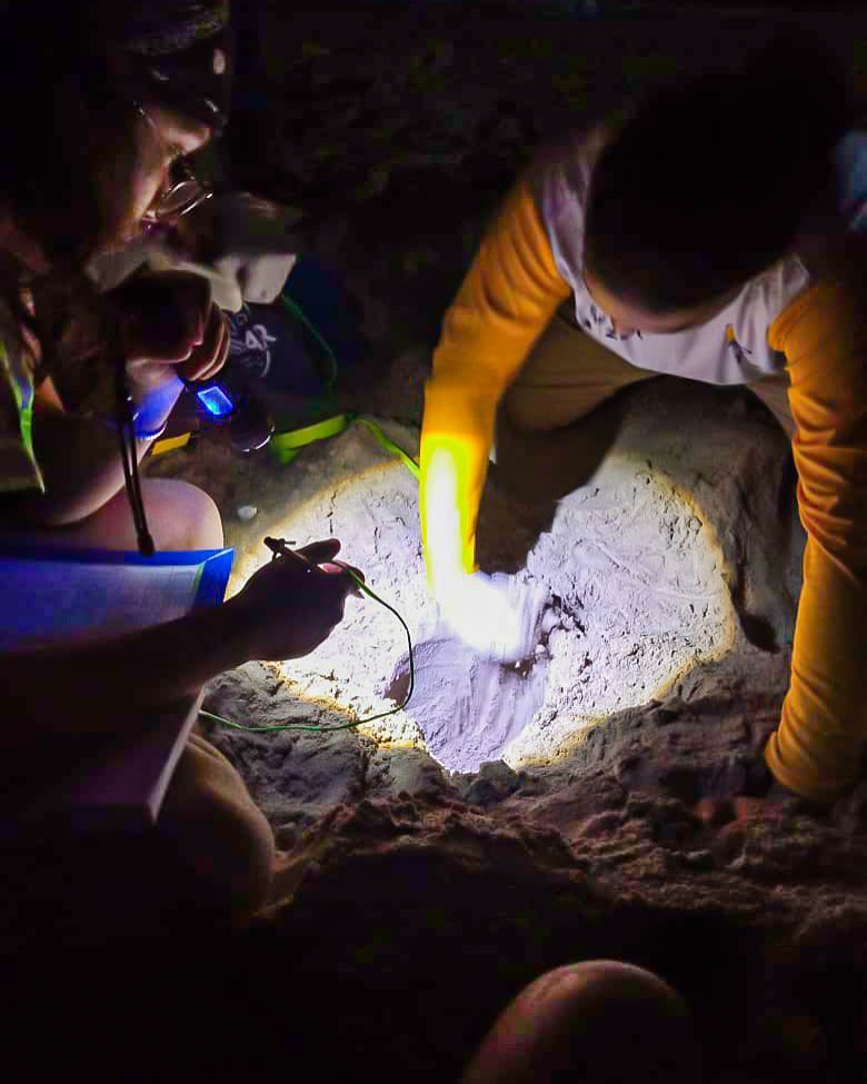 Aproximadamente a las 3:20 a.m, se encontraron rastros del reptil marino al final de Cimarron, lo que llevó a la rápida localización de un nido.