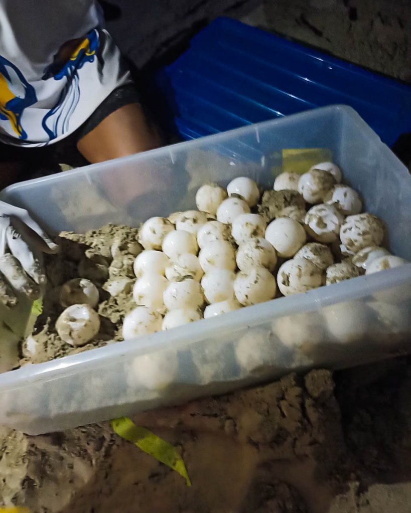 Tras la inspección por parte de los monitores de la playa, se constató que el nido se encontraba inundado, poniendo en riesgo los huevos. Ante esta situación, se tomó la decisión de trasladar el nido a un área más segura dentro de la misma playa, donde fue debidamente delimitado y protegido para garantizar su viabilidad.
