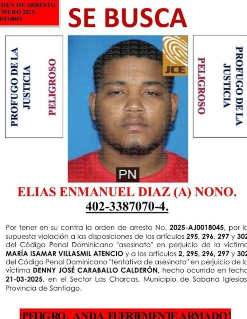 Las autoridades dominicanas han emitido una orden de arresto contra Elías Enmanuel Díaz, alias «Nono», presunto responsable del asesinato de la venezolana María Isamar Villamil, ocurrido el pasado sábado en el sector Las Charcas, en el municipio de Sabana Iglesia, Santiago.