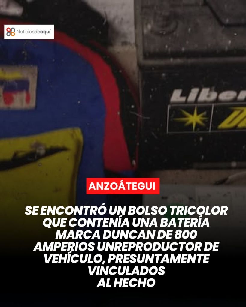 El detenido fue identificado como Yoel Rafael Hernández Gutiérrez, de 33 años de edad. Al realizarle la revisión corporal, se le encontró un bolso tricolor que contenía una batería marca Duncan de 800 amperios, color negro, y un reproductor de vehículo, vinculados al hecho.