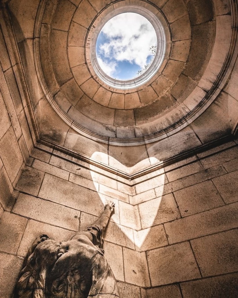 La singularidad de esta sepultura radica en un ingenioso diseño que permite que, con la llegada de cada solsticio de verano, un preciso rayo de luz solar atraviese una abertura estratégicamente ubicada. Este haz de luz proyecta entonces la silueta de un corazón luminoso directamente sobre la pared donde reposan los restos de Louise, creando un efímero pero poderoso símbolo de amor y recuerdo.
