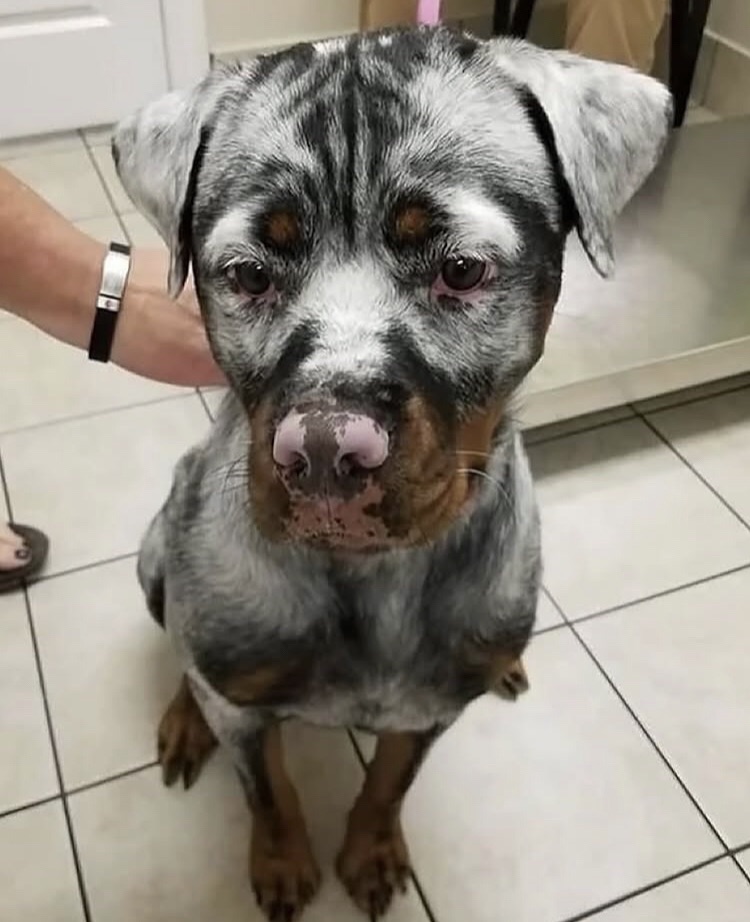 Esta condición se manifiesta cuando el sistema inmunitario del animal ataca y destruye los melanocitos, las células encargadas de producir melanina, el pigmento que da color a la piel, el pelo o las plumas. Como resultado, aparecen manchas o parches blancos irregulares que pueden variar en tamaño y ubicación, y a menudo se expanden con el tiempo. Se ha documentado vitíligo en una variedad de animales, incluyendo perros (especialmente en razas como Rottweiler, Doberman y Pastor Belga Tervuren), gatos (notablemente en felinos negros), caballos, e incluso en algunas aves y reptiles.