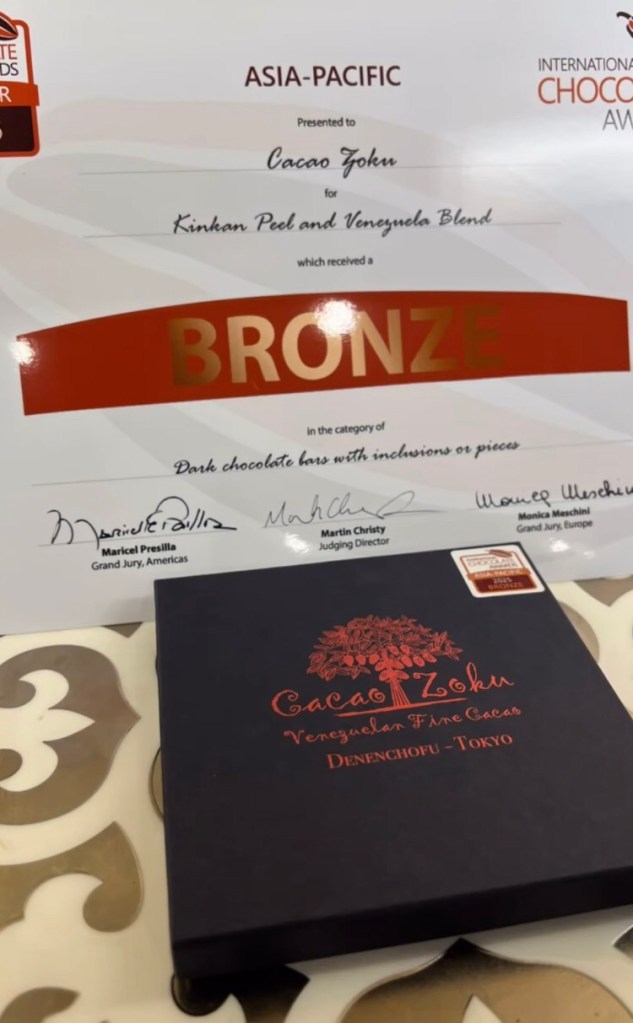 La marca japonesa de chocolates artesanales Cacao Zoku, reconocida por su filosofía bean-to-bar (del grano a la tableta) y fundada por emprendedores venezolanos residentes en Tokio, ha sumado un nuevo galardón a su palmarés. La firma obtuvo una medalla de bronce en la prestigiosa Competencia Asia-Pacífico Bean-to-Bar y Craft Chocolatier 2025 de los International Chocolate Awards.