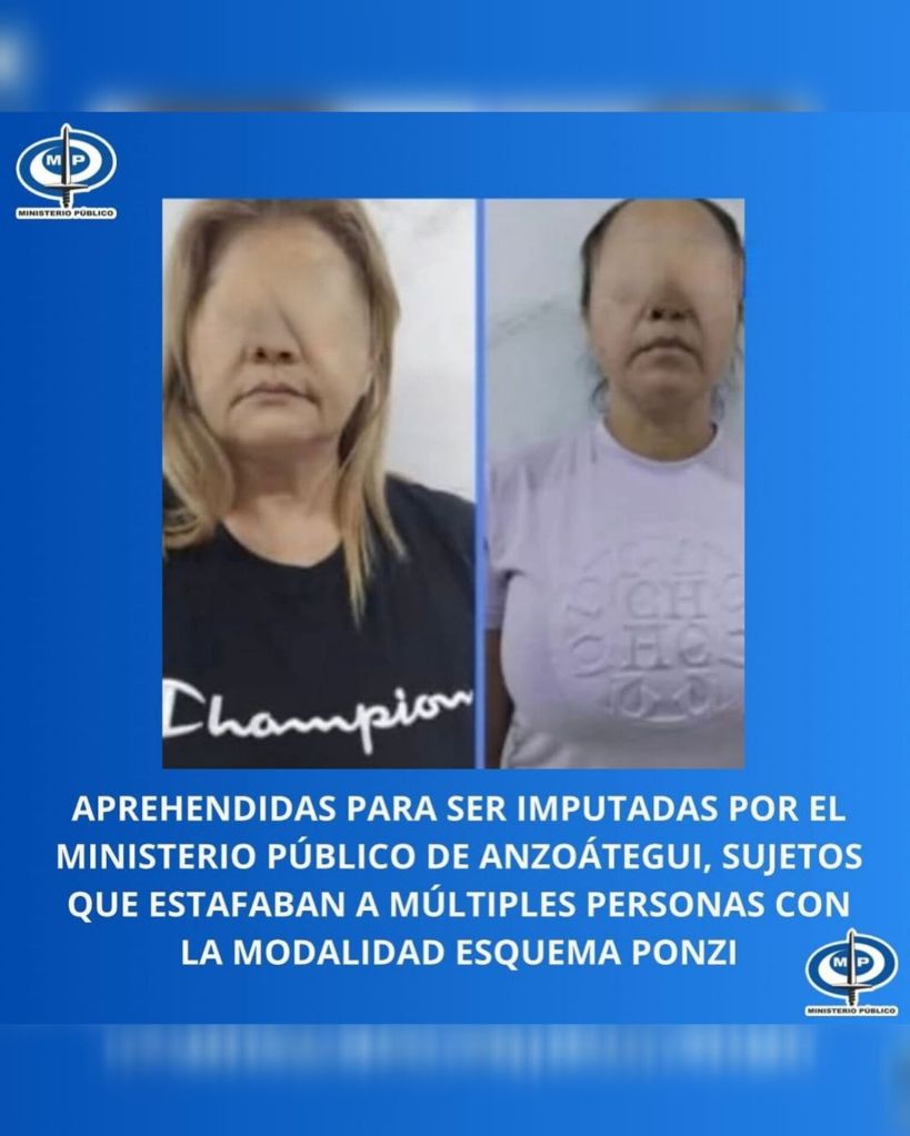 El Fiscal General de la República Tarek William Saab @tarekwilliamsaabh informó que fueron aprehendidas para ser imputadas por el @mpublicove de Anzoategui, «los sujetos Yolimar Zamora y Yuraima Penelope, por el delito de Estafa Agravada Continuada Con Multiplicidad de Victimas y Agavillamiento, dichos delincuentes por medio de conferencias captaban a personas, a objeto de inducirlas fraudulentamente a invertir en una plataforma de nombre TSAI, donde le generarían un gran margen de ganancias basado en el esquema Ponzi y no cumplían con lo pactado, ocasionándoles un grave daño patrimonial a un gran número de víctimas», refiere reseña publicada por el Ministerio Público en Instagram.